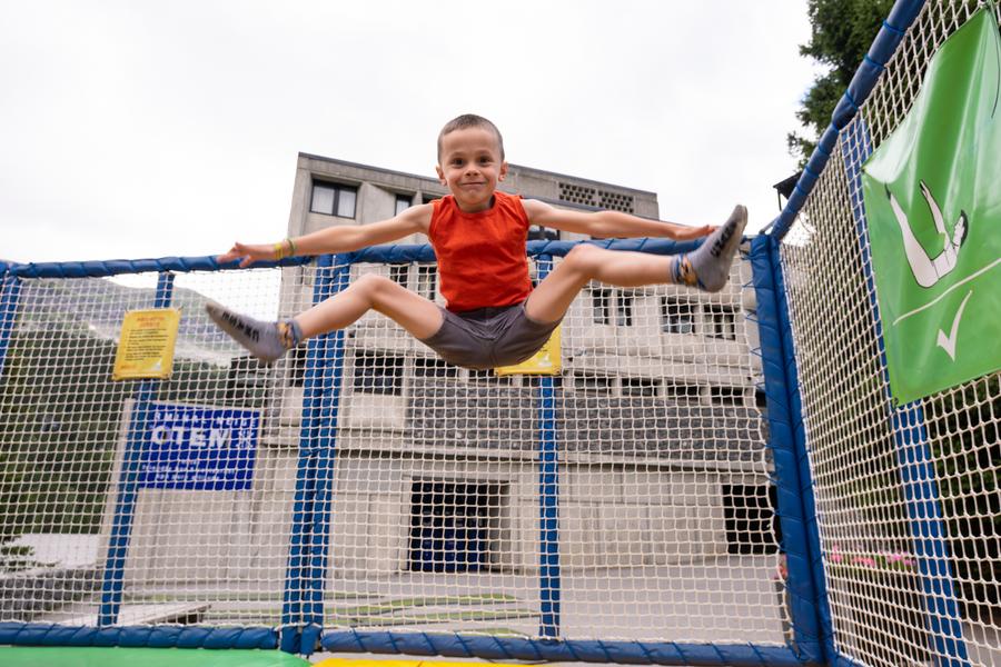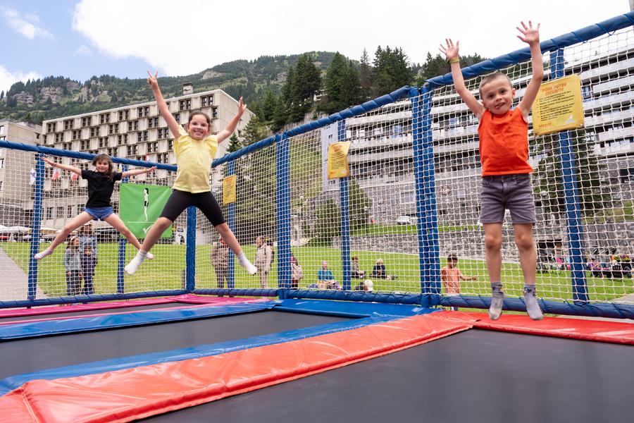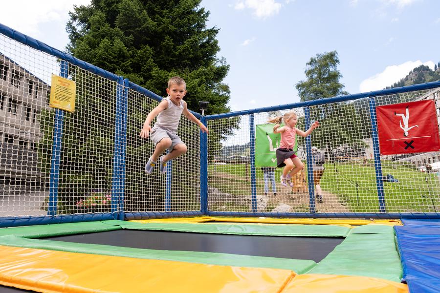 Welcome to the playful world of outdoor trampolines, nestled in the heart of the majestic mountains! Imagine your children happily jumping on the trampolines, surrounded by the peaks and bathed in the pure, invigorating mountain air.