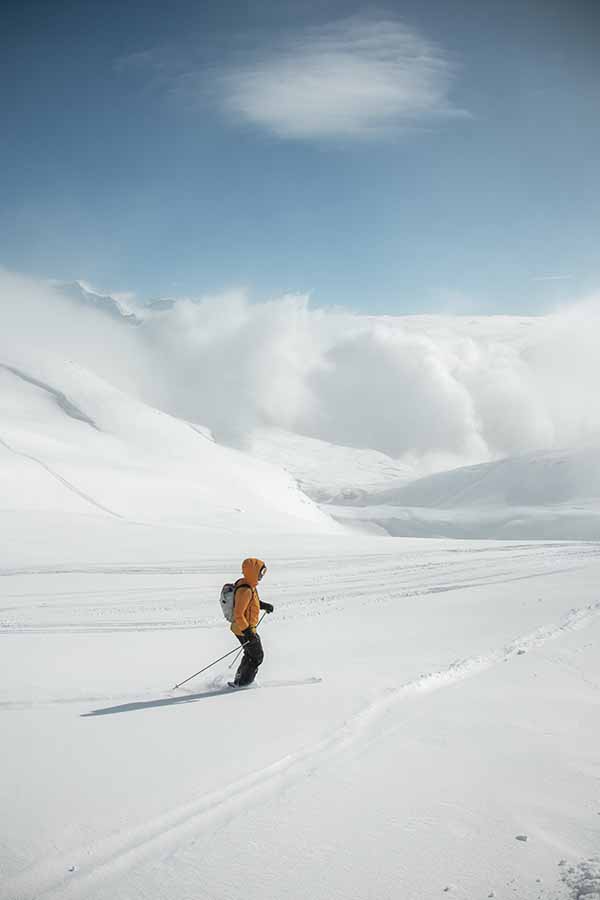 Descente hors-piste sur un manteau de neige vierge