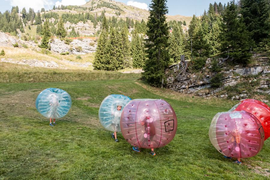 Bulle géante dans laquelle, fixé par un harnais, on marche, court, roule et percute ses adversaires.