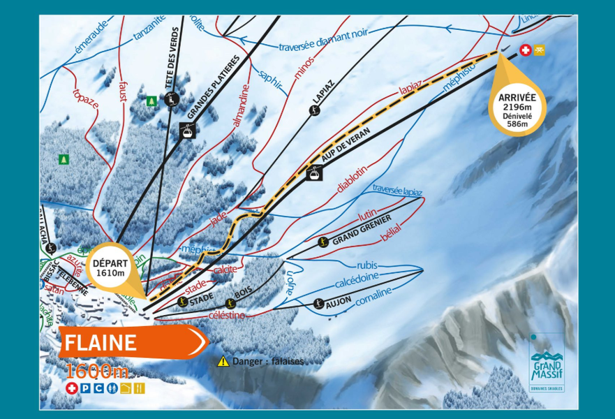 L’itinéraire est tracé, l’entretien de la trace est fait par les usagers. Vous empruntez des portions des portons de pistes ouvertes, serrez sur le côté et rester en file. La descente s’effectue uniquement par les pistes ouvertes. Le service des pistes se réserve le droit de fermer partiellement ou totalement l’itinéraire pour des raisons de sécurité.