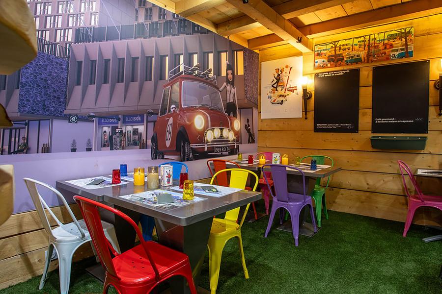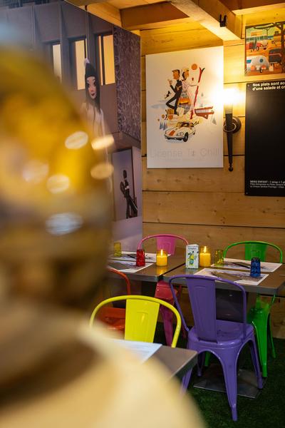 Het restaurant ligt direct naast de Sherpa-minimarkt, langs het Forum richting de kabelbaan Grandes Platières.