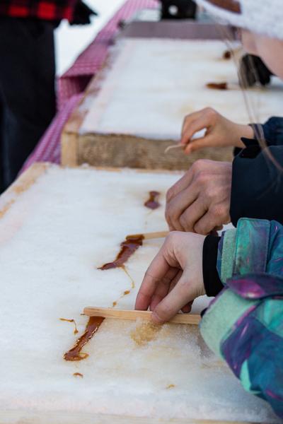 Tijdens het welkomstdrankje van het station kunt u zich tegoed doen aan een heerlijke en gezellige ervaring: het maken van lolly’s van ahornsiroop! In een warme sfeer ziet u hoe de siroop wordt omgetoverd tot heerlijke gouden karamel, waarna u uw eigen ahornlolly maakt, die zowel knapperig is als smelt in de mond. Een originele activiteit, perfect voor jong en oud, waarbij zoete lekkernijen worden gecombineerd met het plezier van het delen van een typische bergervaring.