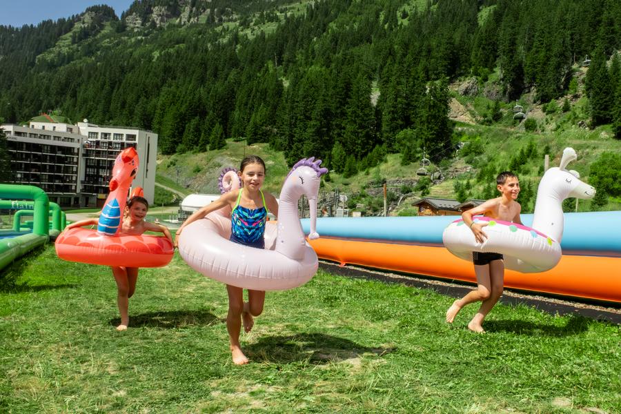 Stel je voor dat je op de top van deze ongelooflijke 140 meter lange afdaling staat, uitkijkt over de bergtoppen en de zuivere lucht van de hoogte inademt. De reuze glijbaan is ontworpen voor een onvergetelijke afdaling voor meerdere personen, zij aan zij.